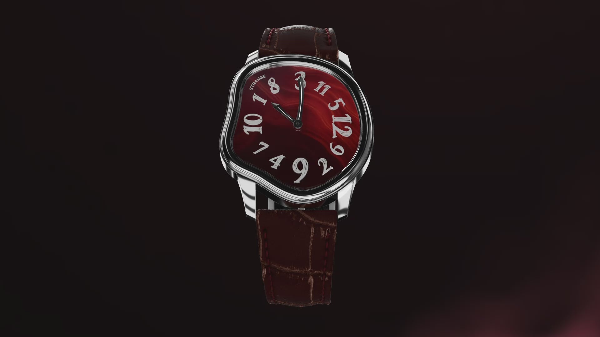 The Crimson Agate edition of the Strange Quartz embodies fire and passion. Its dial, cut from deep red agate, dances with swirling tones of molten crimson, making each piece one-of-a-kind. The surreal case design redefines time, while inside, our in-house quartz module with chip-controlled precision ensures unwavering accuracy. At only 8 mm thick, this timepiece is as comfortable as it is striking. Completed with a brown alligator strap, this watch fuses raw natural beauty with modern engineering.